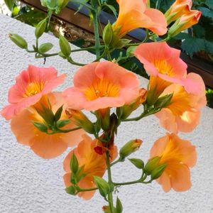 おはようございます😊 ノウゼンカズラの花が咲き始め ました 涼しげに泳ぐめだかたち