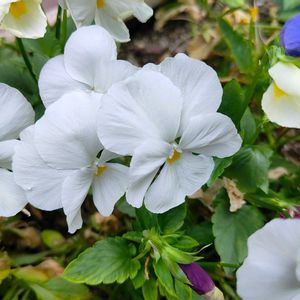 おはようございます😊 いつもたくさんのいいねありがとうございます 暑い日が続きますね 元気に咲く真っ白なパンジー シロタエギクかな? ペチュニアも元気良く咲いていま した