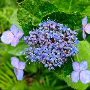 おはようございます😊 名残の額紫陽花 ザクロの花 ふさふさしっぽのような花?