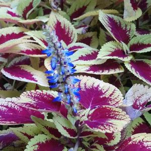 葉が鮮やかなコリウスの花は綺麗なブルーでした。植物は虫さん達に見つけてもらうために頑張ってるんだろうな~