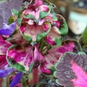 ◎コリウス 2種類 コリウス・ハイウェイモザイク コリウス・愛しのエリー 次々花芽をつけて地味だけど紫のお花が咲いてます💜