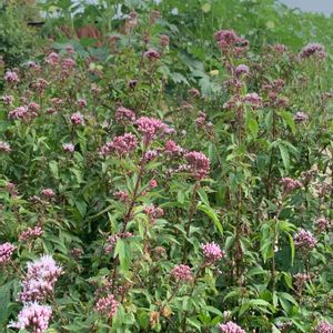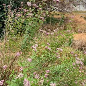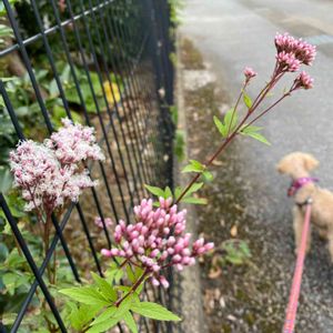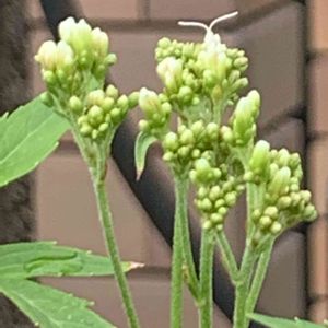 空き家の🏠のフェンスから顔を出していました🤗 園芸品種のフジバカマ⁉️ 上の方の葉も三列しているのでサワフジバカマと教えて頂きました