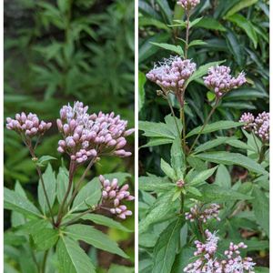 おはようございます😃 秋の七草、フジバカマの花が投稿されていました。 近くにも数カ所植えられていますが、まだ咲いていません。 近くの大きな公園の様子を見に行ってみました。 咲き始めていました。 サワフジバカマでしょう。🤔 白いサルビアの後ろにたくさん植えられています。 フジバカマに比べて、茎の色が赤いです。 また、葉っぱが枝先まで、3裂しています。 別の場所ですが、去年、アサギマダラを見ることができました。 今年も見られるといいのですが。😊 右はユーパトリアム(セイヨウフジバカマ)です。 アゲラタムとよく似ていますが、こちらはフジバカマの仲間。 アゲラタムは和名カッコウアザミと呼ばれ、 別の属だそうです。 葉っぱが、これは先細りです。 アゲラタムは丸っこい葉っぱです。🤔