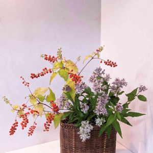 懐かしい竹製の壁掛けレターラックが出てきたのでジュズサンゴの赤い実と 裏庭の園芸種のフジバカマを生けてみました♪ 園芸店で扱われているフジバカマはフジバカマとサワヒヨドリの交配種で園芸種だそうで サワフジバカマ、コバノフジバカマ、ニセフジバカマなどの名前があるそうです。 自生のフジバカマとは確かに葉が違います。 ジュズサンゴ ヤマゴボウ科 ジュズサンゴ属 サワフジバカマ キク科 ヒヨドリバナ属