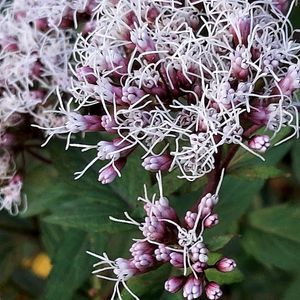 こんにちは😃🌞 今日のお花はフジバカマです🥰👍 🏷 山野草マニア 🏷 金曜日の蕾たち ◎ フジバカマ 学名:Eupatorium japonicum(Eupatorium fortunei) 和名:フジバカマ(藤袴) その他の名前:アララギ、香草(こうそう)、蘭草(らんそう) 科名 / 属名:キク科 / ヒヨドリバナ属 フジバカマは「秋の七草」の一つで、万葉の時代から人々に親しまれてきた植物です。夏の終わりから秋の初め、茎の先端に直径5mmほどの小さな花を、長さ10cm前後の房状に多数咲かせます。川沿いの湿った草原やまばらな林に見られ、まっすぐに伸びる茎に、3裂する葉が対になってつきます。地下茎が大量に伸びて猛烈な勢いで広がるため、自生地では密生した群落になるのが普通ですが、現在の日本には自生に適した環境が少なくなったため激減し、絶滅危惧種となっています。フジバカマの名で市販されているものの多くは、サワフジバカマ(フジバカマとサワヒヨドリの雑種)です。 生乾きの茎葉にクマリンの香り(桜餅の葉の香り)があり、中国では古く芳香剤として利用されました。また、『論語』にある「蘭」はフジバカマを指します。しかし後世、蘭がシナシュンランなど花に香りのある温帯性シンビジウム属の種を指すようになったため、現在の中国では、フジバカマは「蘭草」とされています。 園芸分類 草花,山野草 形態 多年草 原産地 東アジア(中国~朝鮮半島、関東地方以西の本州、四国、九州) 草丈/樹高 60~120cm 開花期 8月から9月(残り花は10月ごろまである) 花色 白 栽培難易度(1~5) 耐寒性 強い 耐暑性 強い 特性・用途 落葉性,香りがある,盆栽向き,初心者でも育てやすい 出かけ先で撮りましたよ(((o(*゚▽゚*)o)))♡ 蝶々(アサギマダラ🦋)が飛んでいるとのことでしたが残念あえませんでした😥♪( ´▽`)🦋🦋💛🧡💛🤎🧡💛 今日は秋晴れです🥰👍 爽やかな一日になりますように。 *\(^o^)/*🧡❤️💛💚💛🧡❤️💜💙