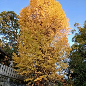 今日も良い天気に恵まれました ありがたいです🙏 pic1.2.3枚目は、先週の11月16日(日)に撮影したもの pic4.5枚目は、今日の23日(日)に 撮影したものです 💛国の天然記念物に指定されている推定樹齢1250年の大イチョウが、先週は見頃を迎え、多くの観光客が黄金色に色づいた巨木のイチョウを見上げ、写真に収めていましたが、数日後、この大イチョウの葉が一気に散り落ちました。一気に落ちた年は大雪になるという言い伝えがあるそうです。 🏷️日曜ビタミンカラー♪ 🏷️日曜日は日本を感じる和の花 🏷️つなぐ、つながる