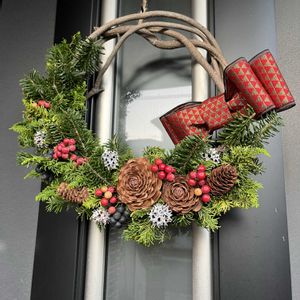 昨日作ったアレンジメントとリースも含めて、クリスマス関連のものを玄関前に並べてみました🎄⛄❤️💚🍂✨🎀