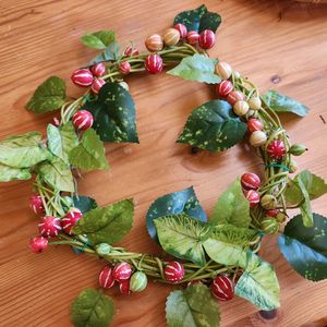 オキナワスズメウリ💚 ひと株だけでしたが豊作!😆 ゴーヤのツルで作っておいたリース台に適当に巻き巻きしました(ゴーヤのツルは丈夫なのでリース台に良いです) 3つ分のリース台用意したけど、ひとつ作ったところで力尽きました😅、全部は収穫せずまだ残してあるのでゆるゆるやります、、、