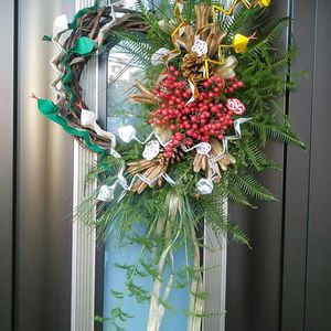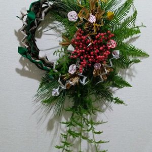 おはようございます。今朝、自作の正月リースを玄関ドアに飾りました。 今年も拙いpicを見て頂きありがとうございました🤗🤗🤗 良いお年をお迎え下さい🎍
