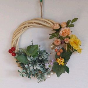 小5の孫と作ったお花のリース 私は針金で取り付ける係で孫はレイアウト係 ああでもないこうでもないと妥協を許さない ばぁばの大変さもわからず🤭 納得するまでやり直しばかり やっと納得の一品です😊 よくできました💕