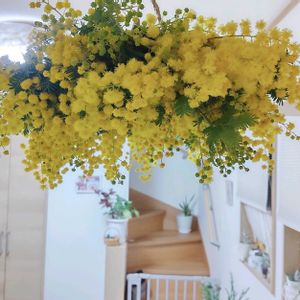 ♡フライングミモザ♡ 始めました🤭 なーんて🤣 リースをつくって すぐに吊るしておくと 花材の向きが立体的に なるのです~👍️