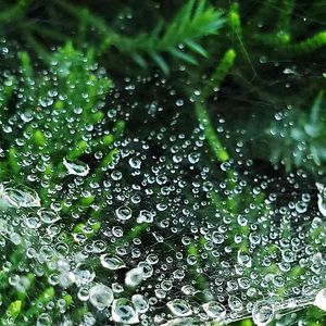 梅雨の一日、カイズカイブキ(貝塚伊吹)とクモの巣。