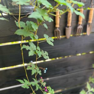 〜今日の庭〜 色付き始めた「実」達 ①②③ *野葡萄* 斑入りの葉だけカラカラになって落ちた… 実は、日々色が変わる💚🩷💜🩵 ( pic①②→本日 ③→昨日 ) ④ *ヘンリーヅタ* 数が減ってる〜 犯人は誰? ⑤ *ツリバナ* 少し 色付き始めた♪♪