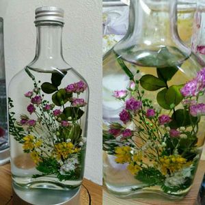 初めて作ったハーバリウム(右2つ)、オイルを入れるまで何度も手直し(*^_^*) またどこかで参加出来るところがあったら、作ってみたいなぁ~