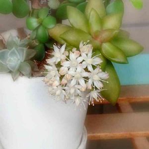 「Crassula cooperi」 やっと、咲いてくれたけど なんせ日照不足で低温続き。おまけにジメジメ☔ これは、徒長してるのかな? おっ!雷が鳴り出した⚡ まだ、降り続くのかな~💧