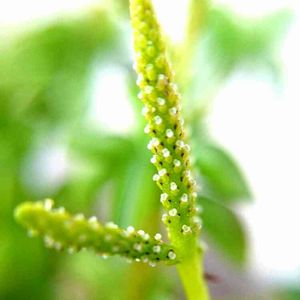 「ペペロミアニパドラのお花」 肉眼では、見えないほどの小さい白いお花が咲いてます🎵 ボロボロだった葉っぱも、復活しています。水やりのタイミングとか量とか、まだまだ勉強しなくては📖 ダメだ❗こりゃ、って ポイするところだったわ…💦🙇