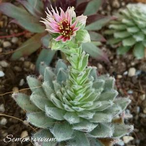 「センペルビウムのお花」 今日は、雨が降らず お天気☀だったので、お花が二つ咲きました。 綺麗な色です。