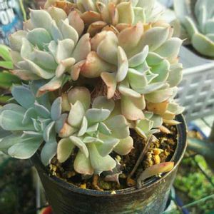 「レボリューション」 たっちんさんのみどりのまとめによると、これから寒くなると可愛いく丸まるようです❤ とても楽しみです😃 今日は、気温は低いですが昼から良い天気です🎵 多肉ちゃんのお世話で、一週間の疲れもぶっ飛びます。 植物の力は凄いですね。