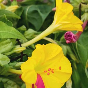 オシロイバナ この夏は余りの暑さで花さん歩もままならず。 オシロイバナを見たくって、5時過ぎのお使いを回り道。 今年は株も小さめ。