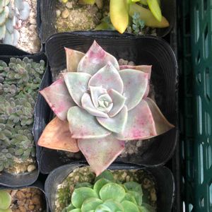 1週間前に購入し、 「色が濃くなってきたのかな?」 までは良かったのですが、下葉がジュレてきたので慌てて植替え💦 お願い、元気になって下さい (;ŏ﹏ŏ) 【グラプトベリア属 バイネシー】 🌱size 直径13センチ🌱 カクト・ロコ産