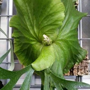 今日のビカクシダはキッチャクード 貯水葉も完成しました❗リドレイとコロナリウム両方の雰囲気があり、イケメンに仕上がってます❗ 早速、新しい胞子葉が出てきました。古い胞子葉はどうしようか?悩んでしまいます…