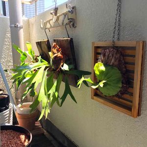 昨日カムティエン市場にて購入したビカクシダさん、何かと何かを交配させた品種らしいのですが… タイ民芸の編みカゴ?皿?につけてみました。成長して覆い被さってくれることに期待。