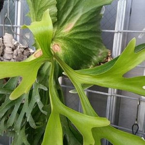 貯水葉がどんどん枯れてる?ような感じに。。水をあげすぎですか? 葉も元気ない感じで、、 ビカクシダ詳しい方、是非ご教授下さい🙇