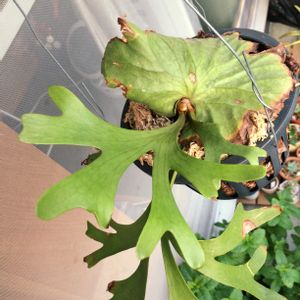 今日のビカクシダはキッチャクードです。 胞子葉が連続4本目出てきました❗ 絶好調のようです❗ それ以外のビカクシダも成長点が活発に動いて来ています。少し涼しくなってきた影響かもしれません。