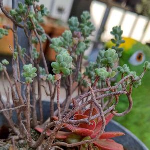 グラプトhyb x スプリングワンダー チョンパして、葉っぱをパラパラした鉢がモリモリ🙌 葉裏が赤くなるところがスプリングワンダー似 何のグラプトかはわからないけど丈夫で増えやすいのを引き継いでいる気がする😁 伸びやすいから太陽たっぷりの一等地がお気に入りにようです👍鉢大きくしようかな〜🎶