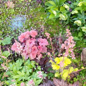 北側日陰の庭 クリスマスローズと ヒューケラと ツタバウンラン