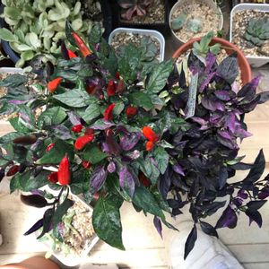 9月に入り初めての投稿です♡ 秋らしく… 斑入りトウガラシ パープルフラッシュ 日差しをたくさん浴びると 紫色が濃くなるそうです♡ 後ろの方に見えるかな〜 黒い実が付いてますよ( ᵕ́ૢ‧̮ᵕ̀ૢ)‧̊·* 寄せ植えにしたら きっと素敵だろうけど… お迎えしたばかりなので お一人さまです♡ 私事ですが … 今日でGS3年生に進級しました🙌 いつも見て下さりありがとうございます。 また、温かいコメントに感謝です♡ 最近は少しおサボり気味ですが ゆる〜くマイペースで投稿したいと思います(๑˃̵ᴗ˂̵) これからもお付き合い下さいね♡ よろしくお願いします(•ᵕᴗᵕ•)⁾⁾ᵖᵉᵏᵒ