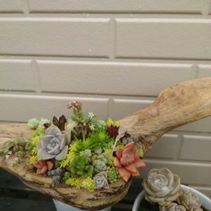 軒下雨ざらしの流木寄せ植えです(ง •̀ω•́)ง✧ 寄せ植えしてから半年経過🤔 セダム消滅Σ(゚ロ゚;)ナニ!!⁉️ 間スカスカですがみんなムチムチ元気に育ってます(≧ω≦)ゞ✨ 水持悪いので雨ざらしが丁度イイ感じ(•∀•)イイ?⁉️