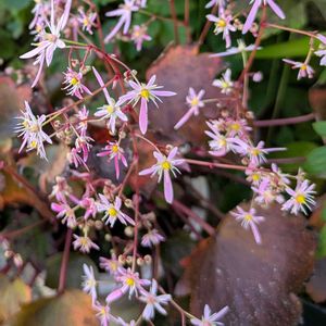 ダイモンジソウ ユキノシタ科 薄紅色、白色の5弁花、上の3弁が短く下の2弁が長細く、漢字の大の字を思わせる、確かに「大」ですよね~。 可愛らしい花です。