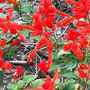 森の中の仲間たち♪ ① [サルビア] ② [ 〃 ] ③ このお花の名前?? ④ わかる方いましたら ⑤ 教えてください お願いします😊 2025.9.8 撮影 🏷️お散歩ちゃんスタンプ に、参加します お願いします😊