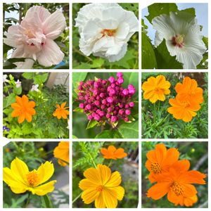 お花たちは元気╰(*´︶`*)╯♡。 ご近所さんのコムラサキの実を蒔いてみます。😝💜 ダメ元で指した挿し穂さんたちが花を咲かせてくれてます。🌸🟣🤍💜🩷🌿 遠過ぎてボケてるのが我が家の庭の上空を覆ってしまうクズのお花。め🙄花弁が散らかって困るのに、お花の様子はほとんど見えませんよー。 もう〜🫤