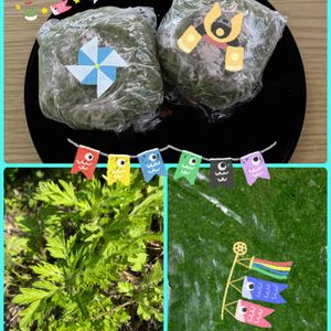 またまたおはようございます〜😊 柏の葉はまだ柔らかいので草大福餅を作りました〜♬召し上がれ〜💖 ヨモギは家の周りになんぼでも生えます😅