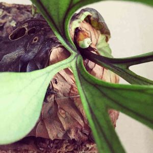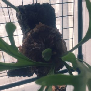 リドレイから新芽が出てきました(*^^*) 貯水葉は肥料焼けしてしまいせっかくの緑が真っ黒になってしまった(´Д` )他のビカクはみんな大丈夫なのにリドレイだけ弱いのかな(´・_・`)