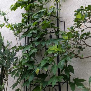 💚沖縄スズメウリ❤️✨ 6月13日に、ポット苗を2個お迎えし、グリーンカーテンにと思ったんですが、適した場所が見当たらず😅トレリス仕立てに… 皆様、熱中症にお気をつけ下さい🥵
