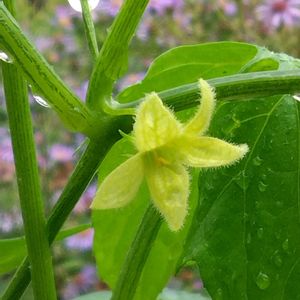 午前中は、お陽さまサンサン🌞とても暑く🥵… 午後3時半をまわって、空がどんどん暗くなり、今4時を過ぎるとカミナリ⚡ゴロゴロ雨☔が降ってきました 台風🌀の影響、あまり無いといいですね🙂 我が家の💚沖縄スズメウリ♥️ 小さなポット苗2個から、ずいぶんのびました🤗 けど…実がつくのか不安🤔 2枚目、3枚目は実の今の状態🥴大きくなるのかなぁ…