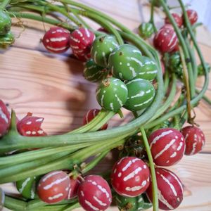 沖縄スズメウリ このシマシマ模様の可愛らしいこと♥️💚 緑の実が熟すと赤になって グラデーションもとても美しいです✨ くるっとまとめて簡単リースに!! 👶まだ生まれません~ 予定日二週間前には受け入れ準備万端🆗️‼️だったけど、また一通りお掃除(笑) 1ヶ月も経つと埃ってたまるのね~