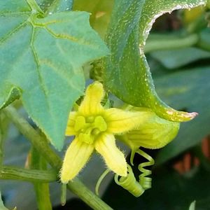 🍉沖縄スズメウリ🍉 昨日ショーンちゃんのを見て うちのも写真撮ってみた🎶 スゴく発育旺盛で 2階のベランダまで伸びてきて 実をつけてます💗 いつになったら実が赤くなるかなぁ♡o。(๑✪‿✪๑)。o♡ ちっこいスイカみたいでカワイイ🎶