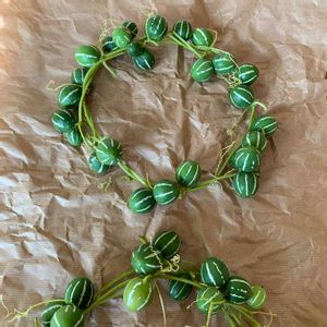 沖縄スズメウリを見た時、いつかやってみたいと思っていました。 キャンディリースです。丁度ハロウィンも近いので、リボンを黒とオレンジ色にしようと思いましたが、売り切れ😱家にある赤と緑で代用しました。ハロウィンの飴玉に見えるかな。 作り方は簡単。 ①ダイソーの透明フィルムを縦長に4等分と2色のリボンを✂️。 ②沖縄スズメウリを配色を考えて、フィルムに並べて包みます。 ③1個ずつねじり、その上からリボンで縛ります。丸くしてつないだら終わりです。 沖縄スズメウリは、明るい色が多い方が映えます。包む時は、大きさを同じにするとやり易いです。 ⚠️沖縄スズメウリは有毒なので、小さいお子さんのいる方は、飴玉と間違えないように注意が必要です。 1ヶ月、GSの出来ない状況となりお休みします。返信、イイネは1ヶ月後になりますので、よろしくお願い致します。