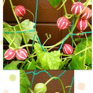 収穫してみた❤️ GSで知った、スズメウリ 昨年秋に苗を買ったので すぐ寒くなり昨年は、辛うじて二個くらい 花は咲いたのですが、実はなりませんでした💧🌼 枯らすのは勿体無いので、 室内で冬越しさせました🤗 それだけでは、心配なので 春に苗もまた2株迎えて、 合計3株😅 冬越し株は、春に外に出したら、 どんどん伸びて 花🌼も咲き実もつけてくれました🤗💖 真っ赤に変わり収穫してみました🔴 春苗の2株分残ってます🤗 こちらは、まだ緑も多いので 収穫は、またにします🔴