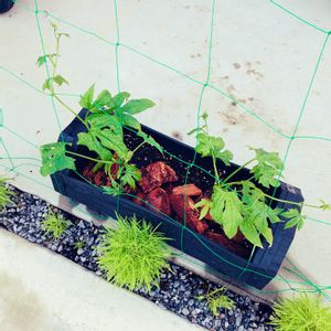 念願だった沖縄スズメウリ✨ 2つ植えました! グリーンカーテンになりますように! 隙間に地植えされているのは、こぼれ種から育てたコキア。 石掘り起こし、土を入れて植えました。 さらにまた上に石を撒きました。 プランターの日陰作りをしてもらいたくて植えたのですが、どこまで大きくなるかしら?
