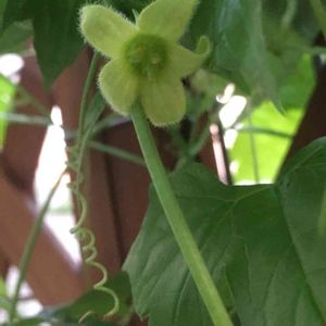 沖縄スズメウリ 欲しくてメルカリで種を購入 蔓は伸びているのに一向に花が咲かないので今年は無理かなぁと諦めていたら🤦♀️ わぁ〜〜🌼🌼2つ咲いてる⤴️ 頑張って実になってね😆