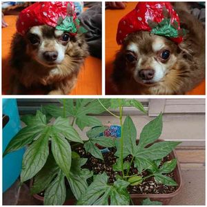 久しぶり登場、我が家の愛犬イチゴの紙風船で遊んだあと、頭に乗せてみました😂