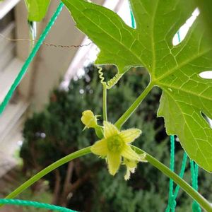 職場で緑のカーテンに挑戦中❗ちゅらうりに花が咲きました💕 まだまだカーテンにはほど遠いですが(^^;