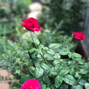 昨日に続き紅い薔薇🌹 ミニ薔薇スィートチャリオットさんと 紅ピンク ミニコラボになっています✨ 暑い時期に紅い薔薇を眺めるなんて 少し前は考えもつかなかったけれど 実際は私もがんばらなくちゃ!って 気にさせてくれる効果があるみたい 言うなればこの一角は私のパワーチャージスポットかな😆✨