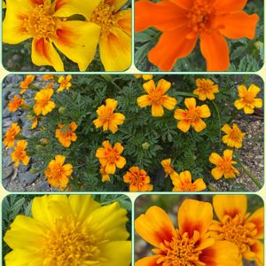 庭のマリーゴールド・ディスコ💐 フレンチタイプ一重咲き(種から) 真ん中(9月4日)満開時 その後切り戻して今は花数は少ないです ビタミンカラーに元気を貰えます♪