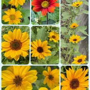 🌻庭のヒマワリ🌻 ↖️から🔁 *ヒメヒマワリ *ヘリオプシスブルーティングハーツ 宿根性のヒメヒマワリ 深い赤色から褐色のオレンジへと咲き進むごとに色が変化 *混合種からは今のところ黄色ばかりですが可愛い向日葵に元気をもらえます🎵 おはようございます😃 7月もよろしくお願いします🌻